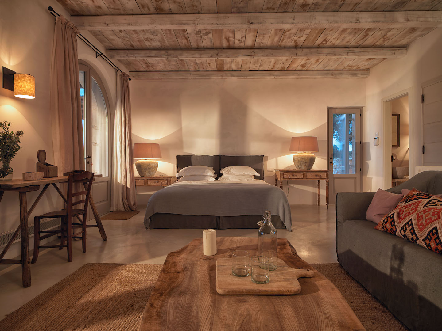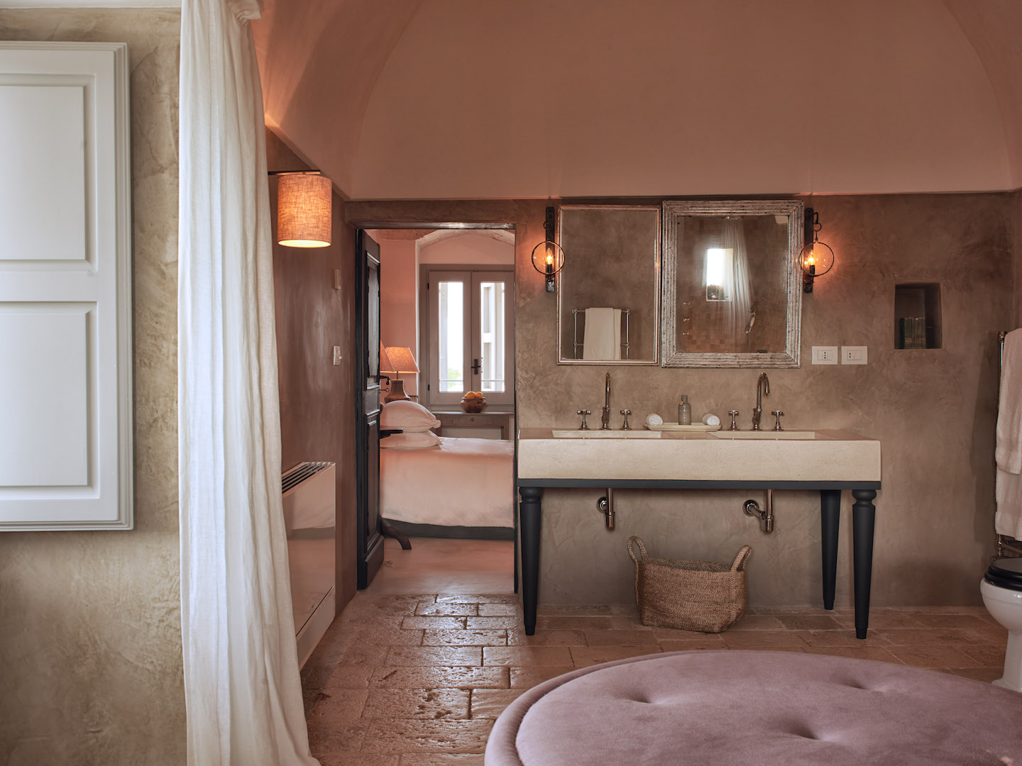 Un’invitante master suite al piano terra affacciata sul mare situata all’interno della Pool House, con accesso alla suite Lampascioni.