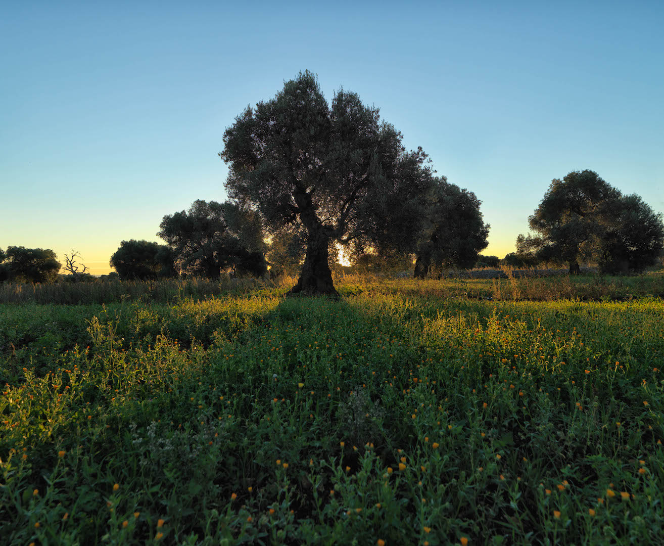 Il punto panoramico sopraelevato della Masseria Petrarolo offre ampie vedute di oliveti secolari e dell’accattivante mare Adriatico.