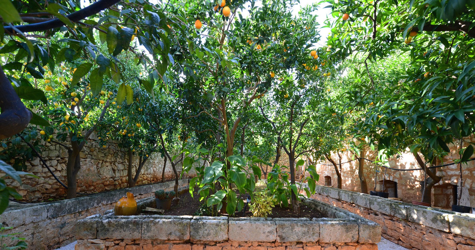 L’originale agrumeto recintato contiene antichi alberi da frutto e mandarini.