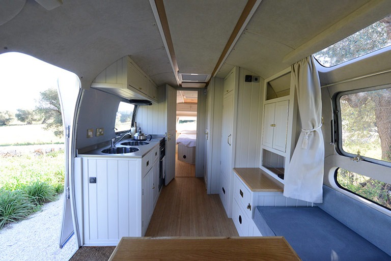 Restaurato per oltre 5 anni da un ex costruttore di barche nel Devon e portato in Puglia dal proprietario, l’Airstream è stato completamente modernizzato e ha ricevuto lo stesso trattamento di interni della Masseria.