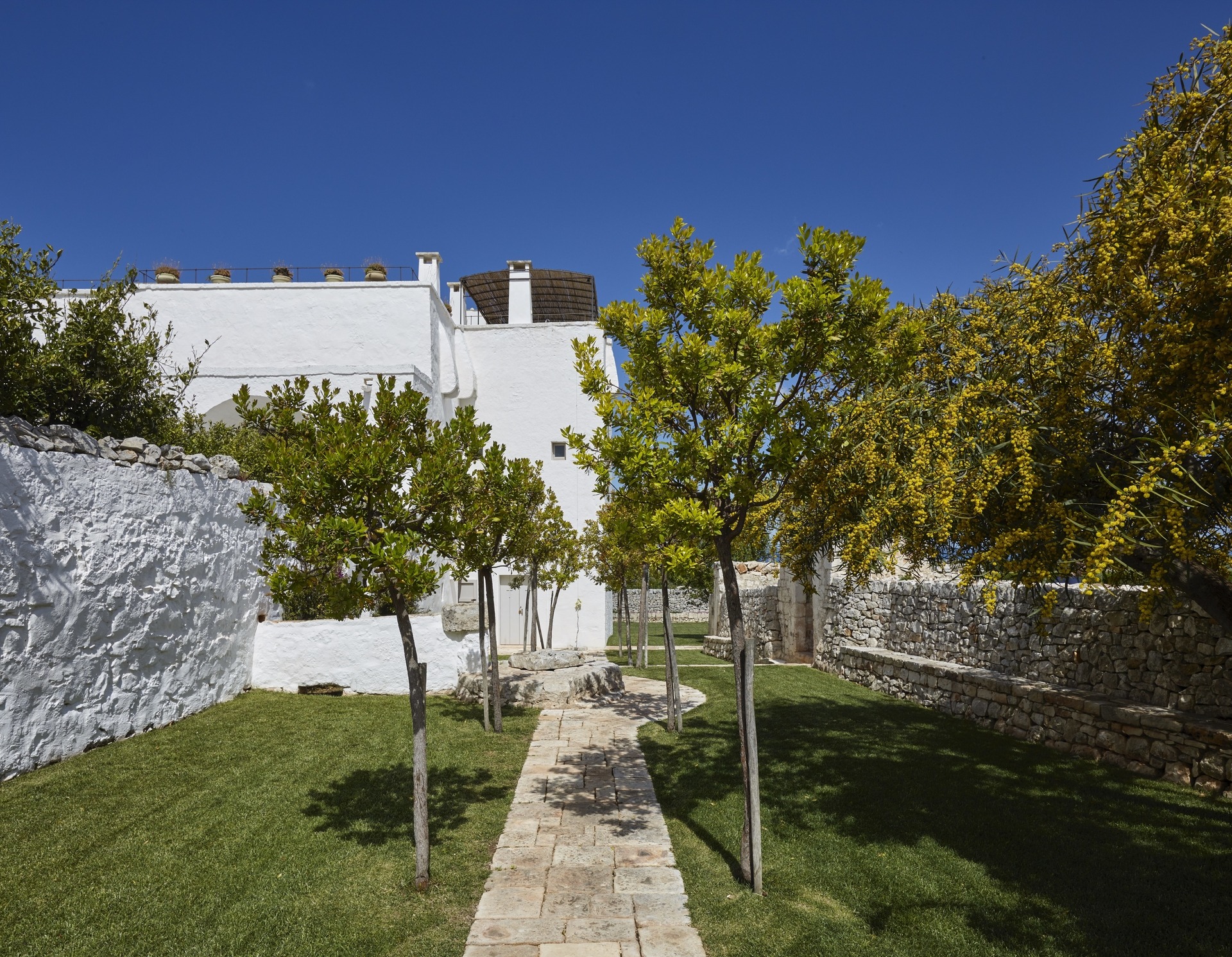 Vigneti di varietà pugliesi incorniciano l’approccio alla casa.